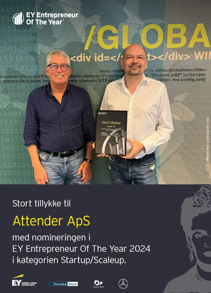 Nomineringen giver klart Attender blod på tanden. At blive anerkendt for at man har gang i det rigtige er en stor motivation. Der skal lyde en kæmpe tak til familie, venner, kollegaer, business angels, samarbejdspartnere. Og nok allermest til vores super seje udviklingsninjaer Niels & Mikkel!