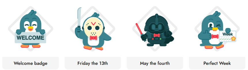 Studerende kan tjene op til 8 forskellige Attender badges for at møde op til undervisningen. Hver badge repræsenterer en forskellig præstation, hvilket tilføjer et element af udfordring og opnåelse til klassefremmøde. En sådan badge er “Perfekt Uge” badget, tildelt til studerende, der deltager i hver klasse i en uge. Nogle badges kan også opgraderes. Dette opmuntrer til konsekvens og regelmæssighed i fremmøde.