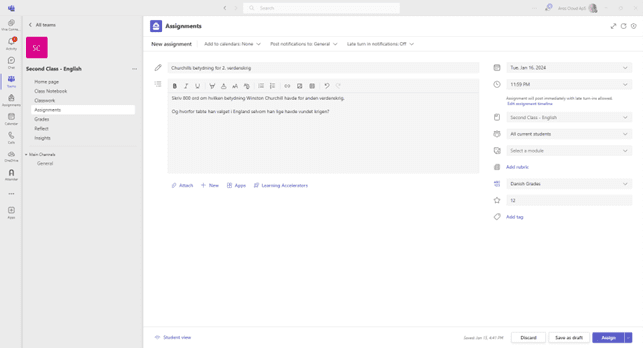 Nem håndtering af skriftligt fravær i Microsoft Teams opgave aflevering