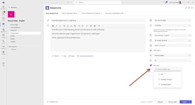 Når du har lavet opgaven, så trykker man på ”Tilføj mærke/Add tag” funktionen.